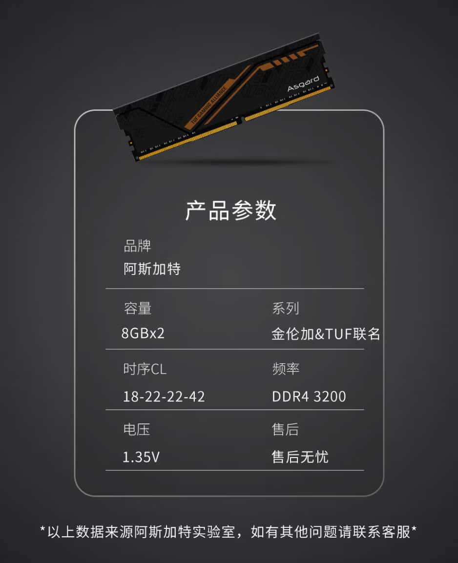 阿斯加特(Asgard)16GB(8GBx2)套装DDR43