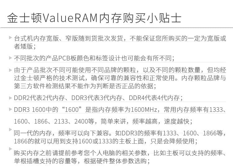 金士顿(Kingston)8GBDDR42666台式机内存条