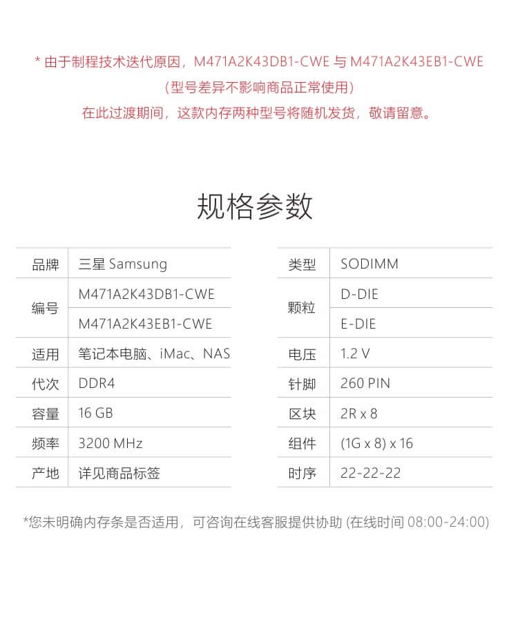 三星SAMSUNG笔记本内存条16GDDR43200频率