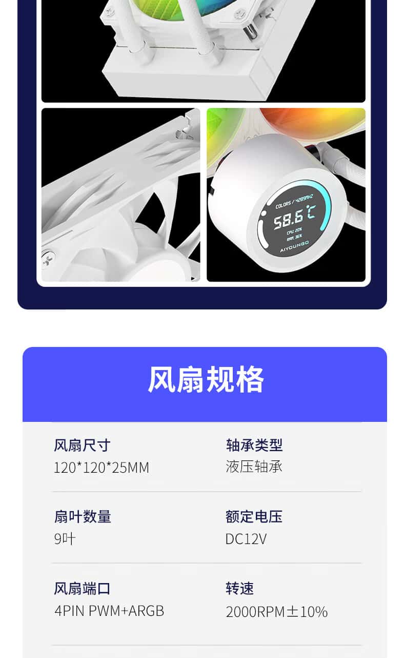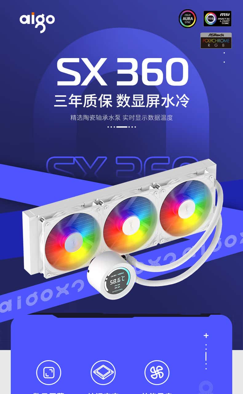 爱国者(aigo)SX360ARGB版白色数显屏一体式CPU