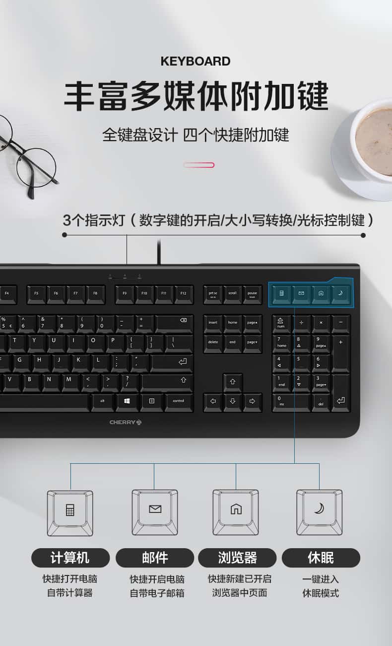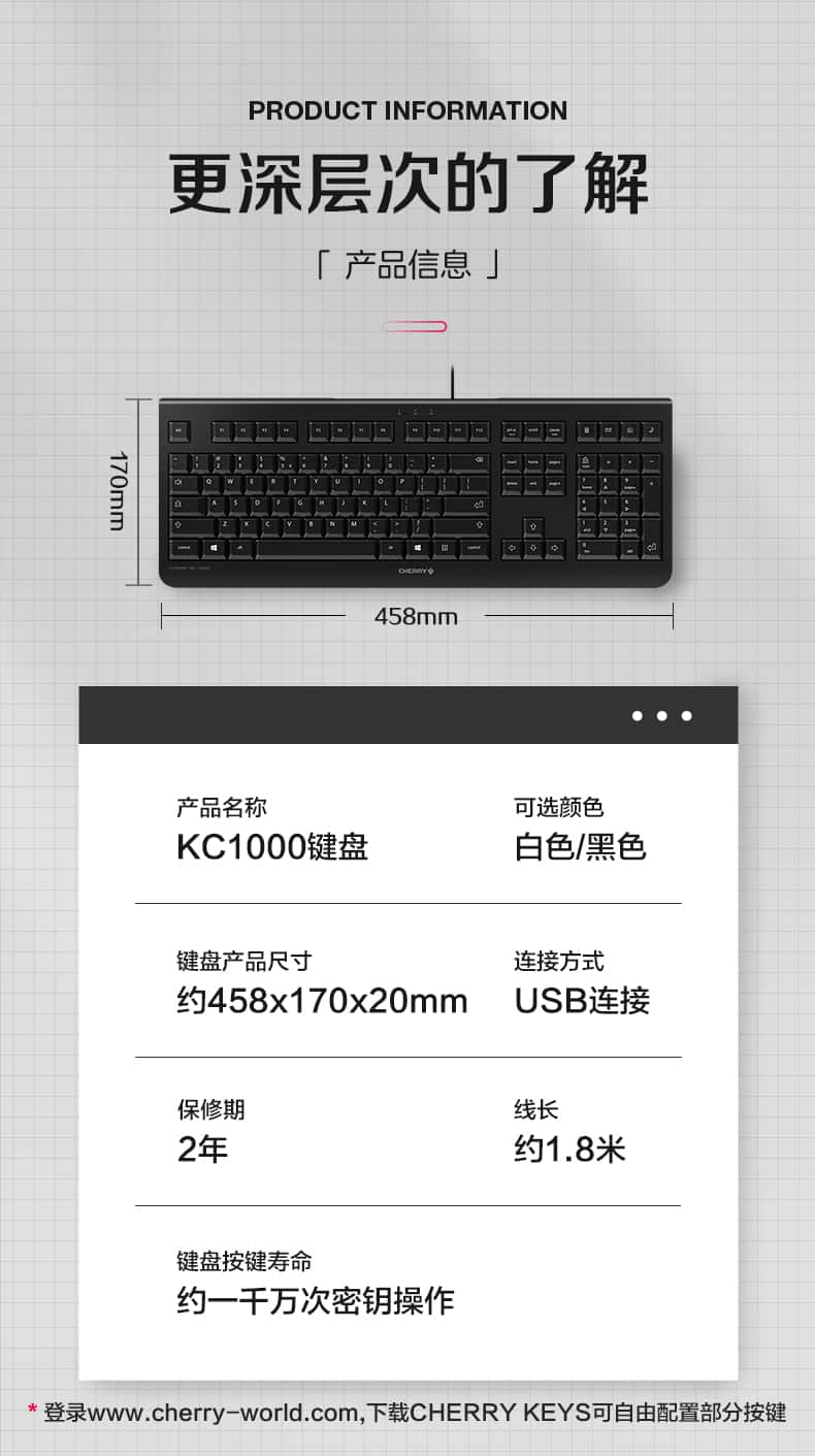 樱桃(CHERRY)KC1000薄膜键盘电脑有线键盘办公商务