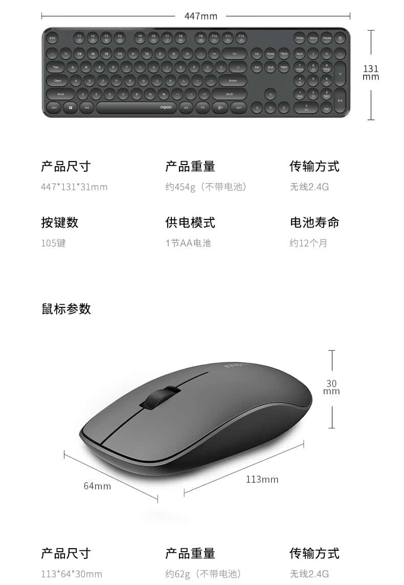 雷柏(Rapoo)X260S键鼠套装无线键鼠套装办公键盘鼠标