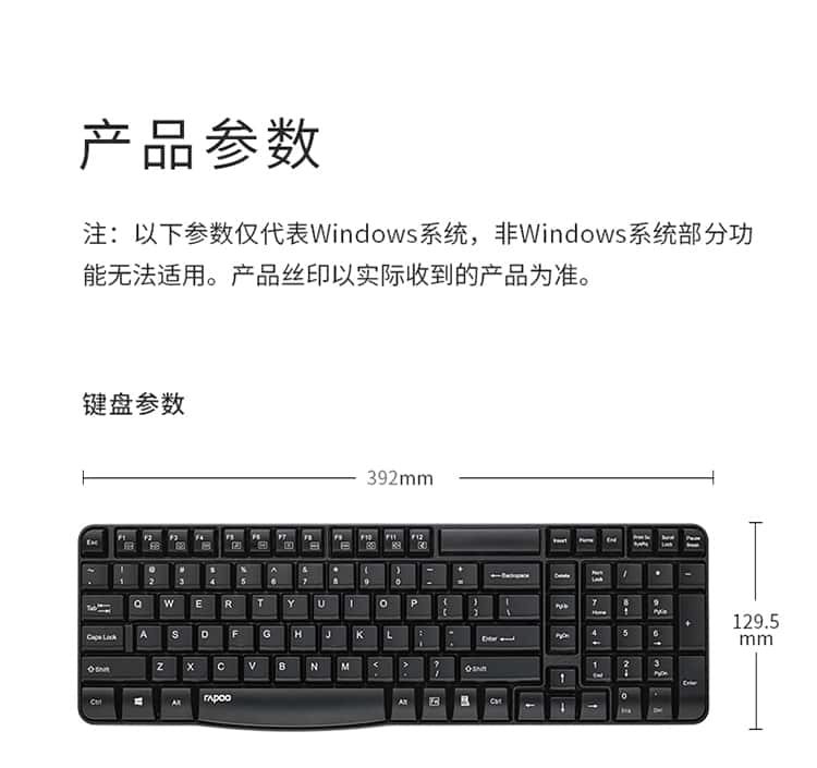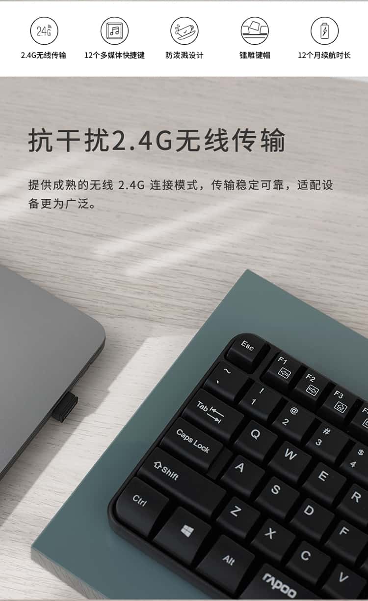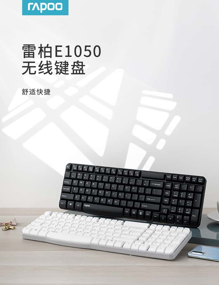 雷柏(Rapoo)E1050无线键盘办公键盘紧凑键盘防溅洒设