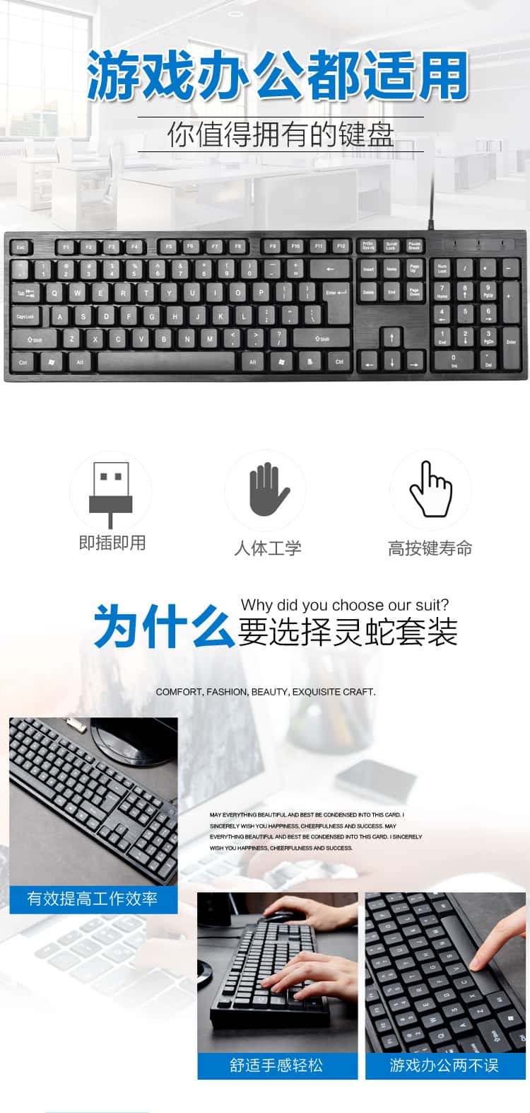 灵蛇(LINGSHE)有线单键盘USB笔记本台式电脑一体机通