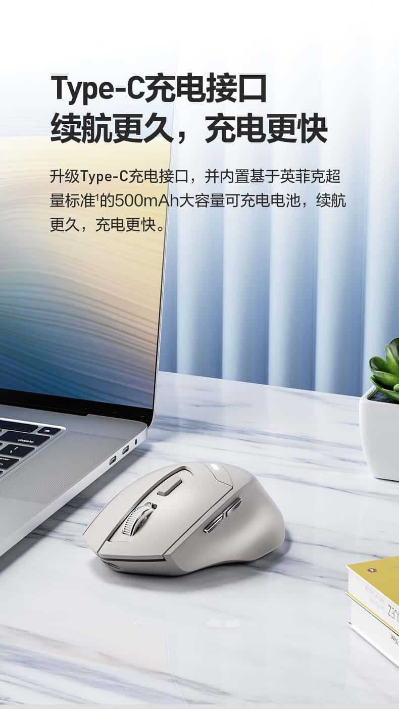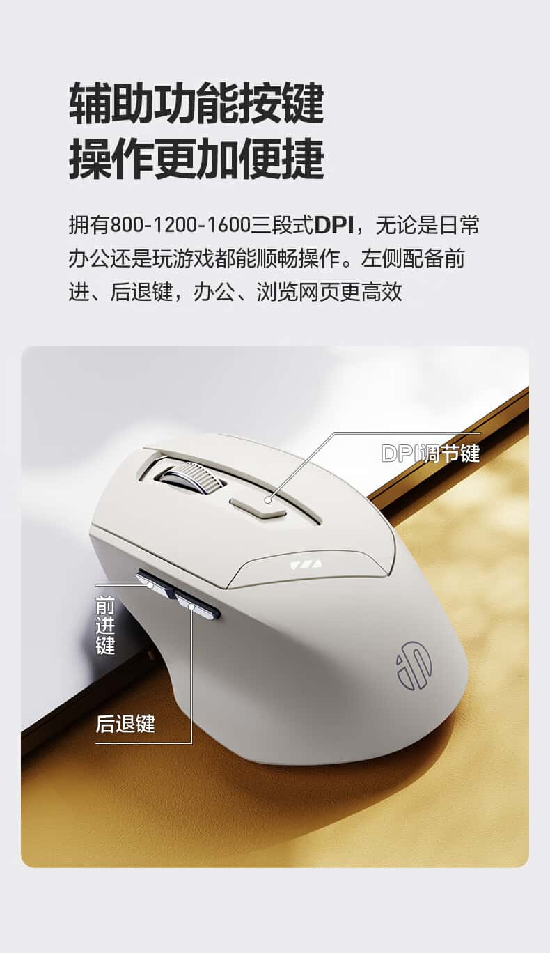 英菲克(INPHIC)F1无线鼠标可充电轻音办公人体工学电脑