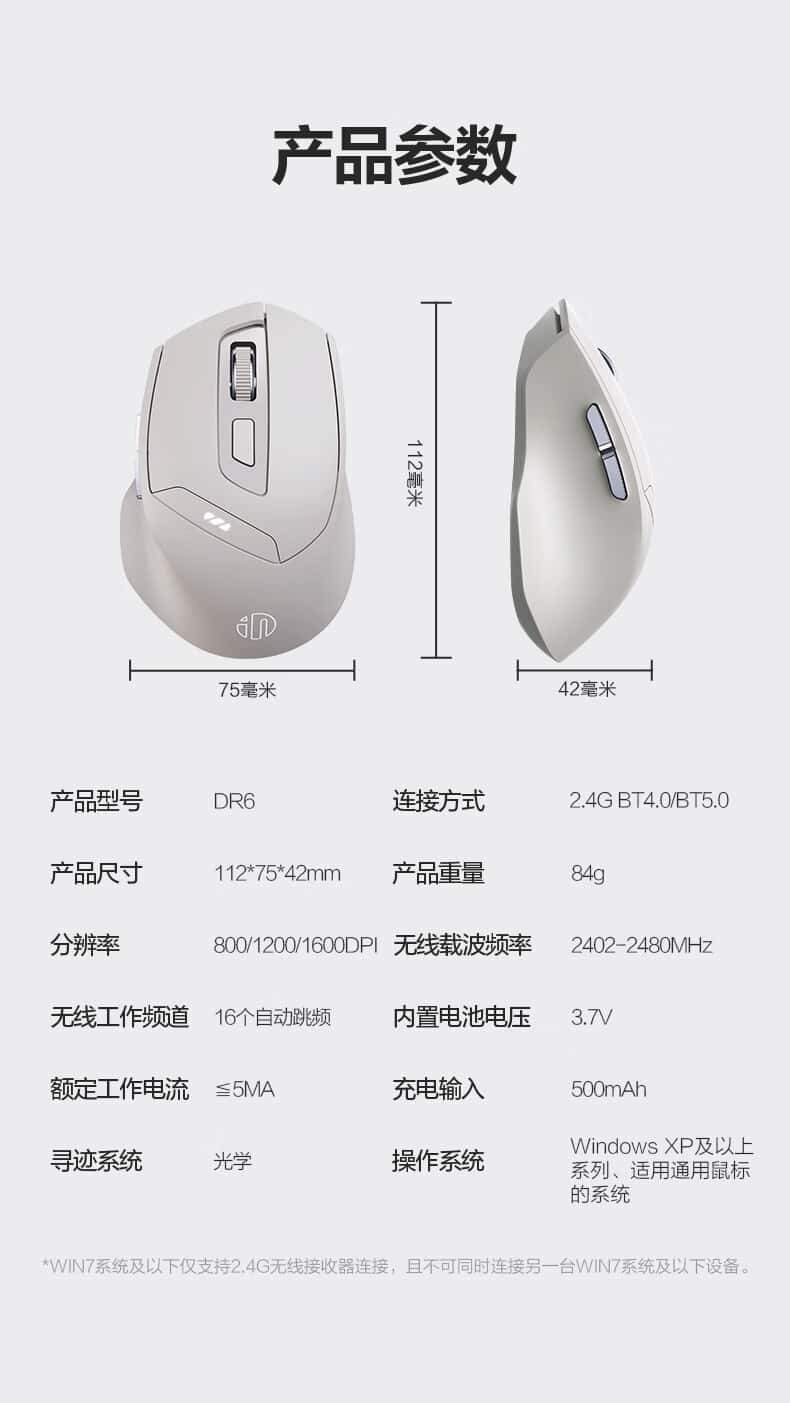 英菲克(INPHIC)DR6无线蓝牙鼠标可充电式办公轻音便携