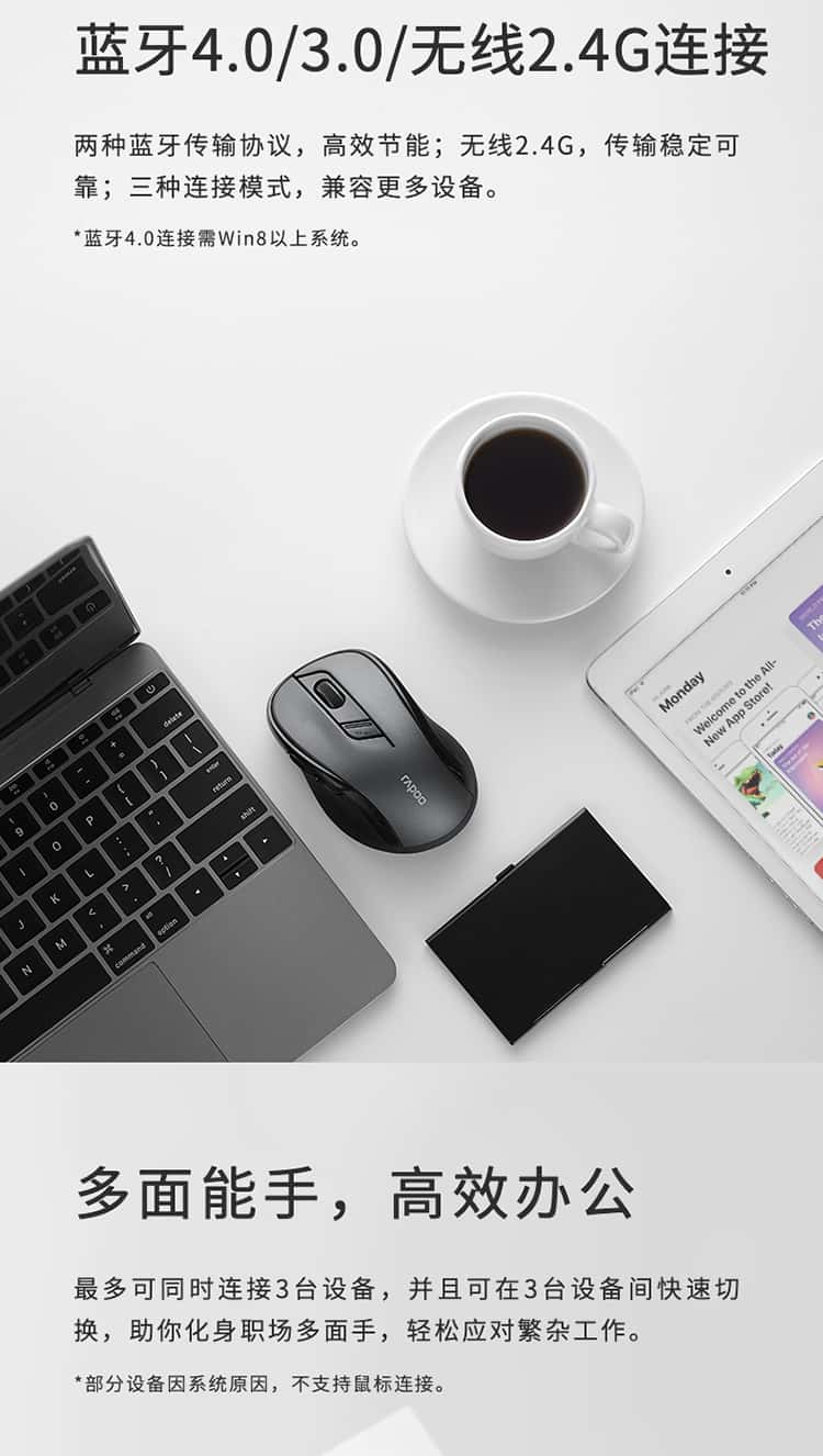 雷柏(Rapoo)M500G无线蓝牙多模鼠标办公便携轻音鼠标